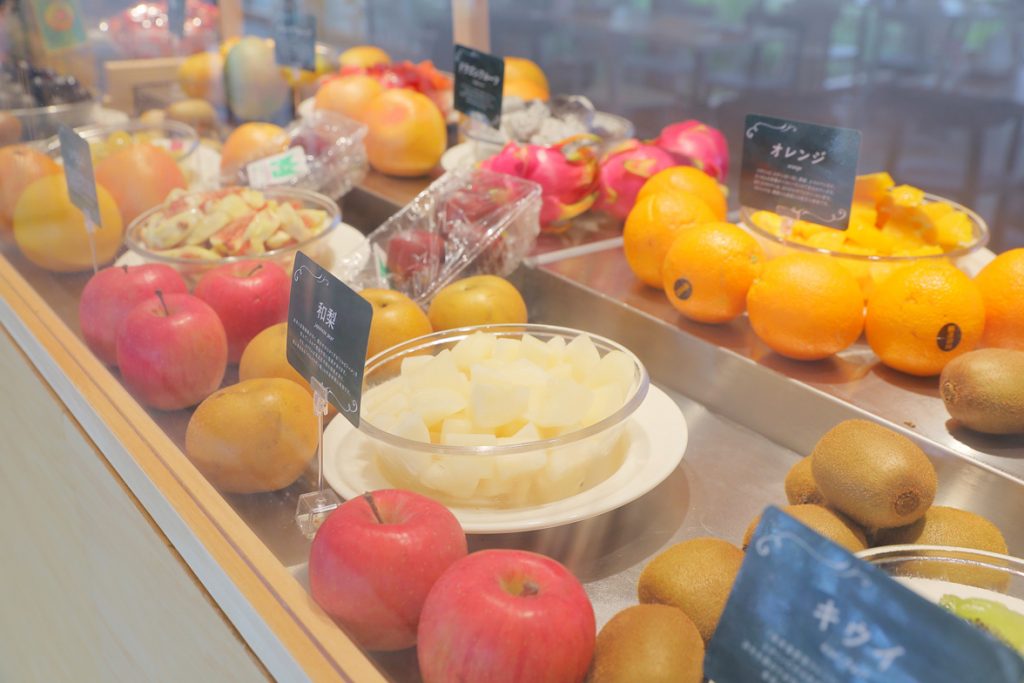 ランチセットのサラダは、好みのフルーツ5種を選び、特製オレンジドレッシングでいただこう!