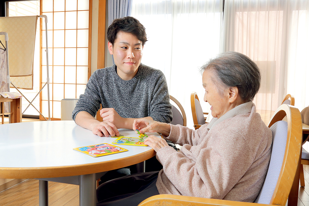 「自分の祖父母と思い、親身になって接しています」と男性職員の一人は穏やかに語る
