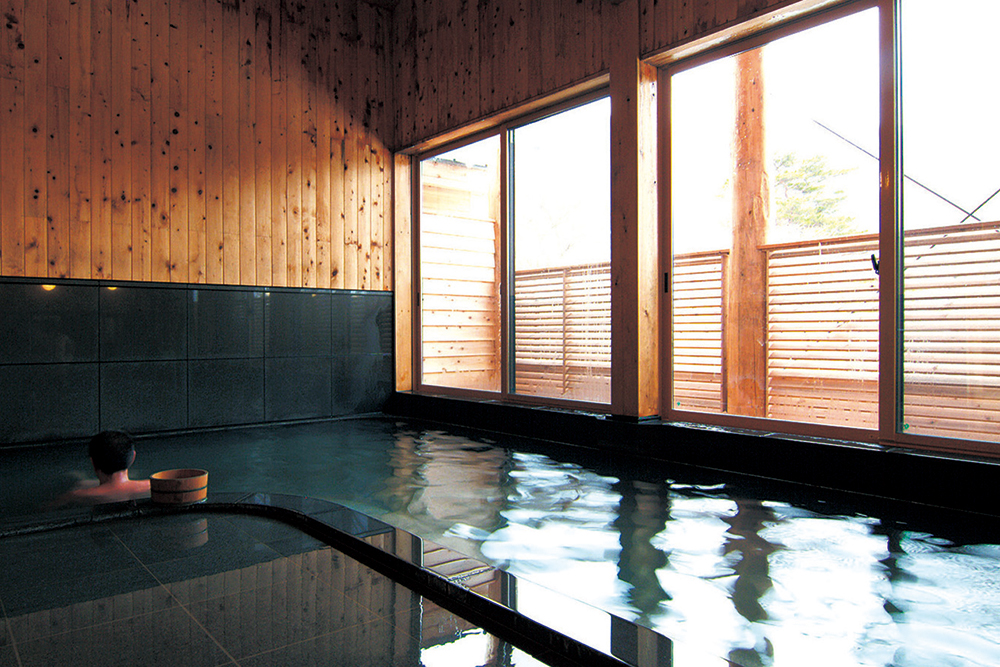 このあたりの幼児語で「風呂」をさす「じゃっぽ」の名がついた、青根温泉の入口近くにある温泉施設。川崎町産のヒノキや松、杉、ケヤキなどを使った平屋建てで、ロビーや更衣室、浴室にも木材がふんだんに使われています。L字型の浴槽には滔々とはられた湯は、全て源泉かけ流し。程よい湯加減で、思わず長風呂してしまう心地よさです。