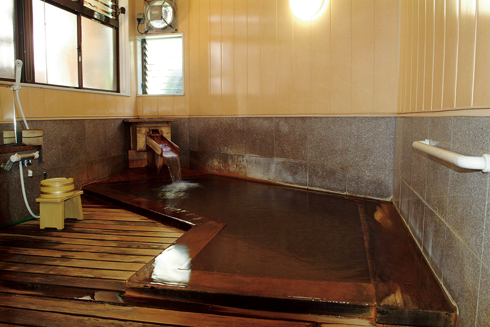 地元の人や観光客など、毎日多くの人が利用する共同浴場。細長い浴槽に満々とあふれる茶褐色の湯は、熱めで湯量も豊富です。温度に慣れていない人は、休憩をはさみながら徐々に身体を慣らすのがベター。すぐに帰るのがもったいないほど、浴槽の雰囲気も抜群です。共同浴場の風情を感じながら入浴を満喫して。