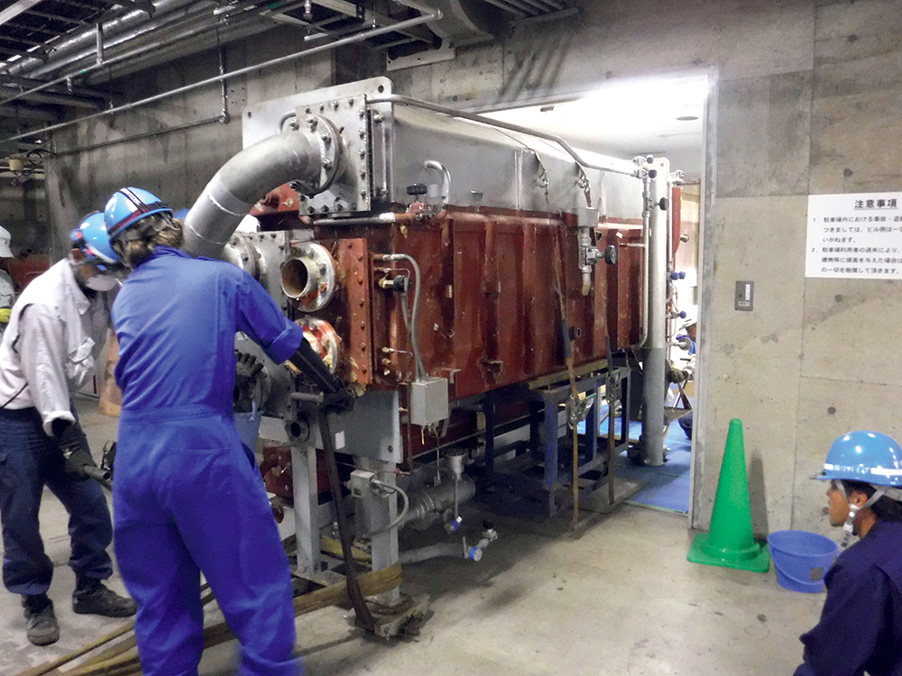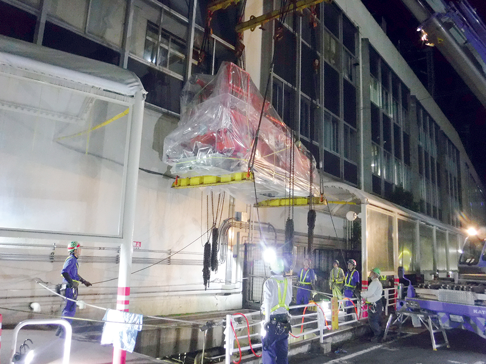 設備機器の搬入据付工事は、現場によっては夜間施工になるケースも。その場合は翌日を休みにするなど調整している