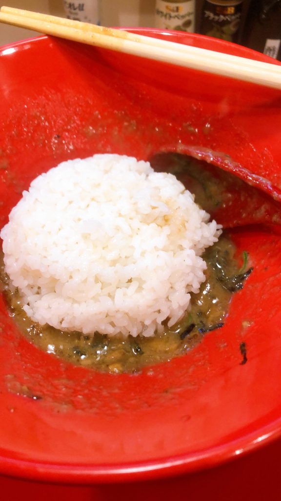 〆は小ライスをスープに入れて、豪快に混ぜていただきます。