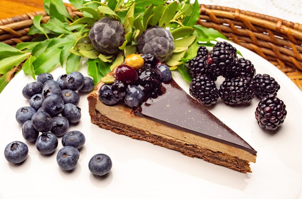 なめらかなムースやココアクリーム、甘酸っぱいベリーの競奏を楽しんで