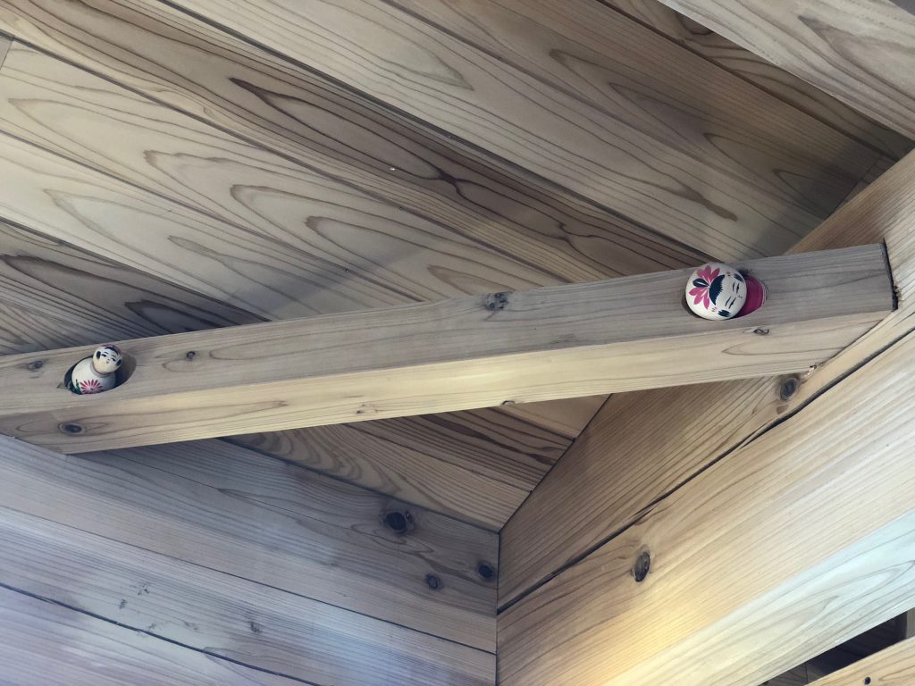こちらはお手洗いの中で発見した(笑)、こけしのトイレットペーパーホルダー…!なんとも言えない表情ですがGOODです