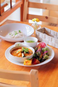 季節によって旬の野菜が登場する「日替わりランチ」。この日は「若鶏と畑の野菜のスパイスカレー」が登場