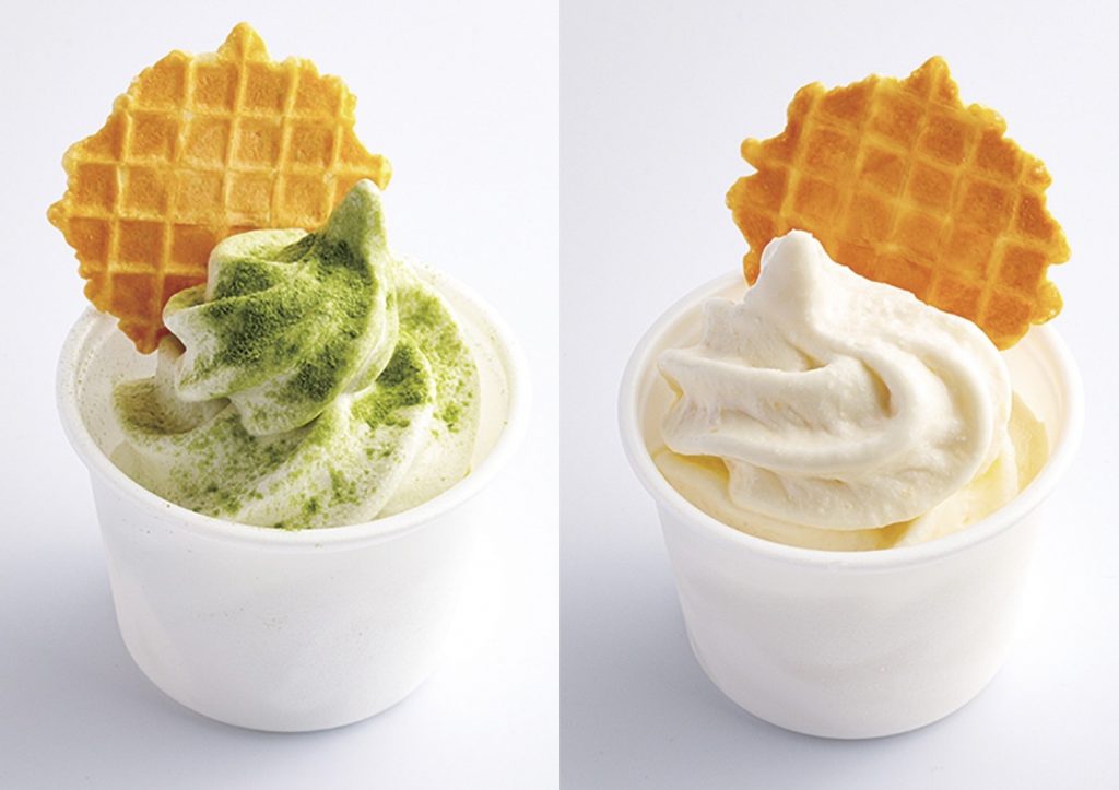 亘理町産のイチゴやリンゴ、ブドウ、アセロラで仕立てる「特製ブレンドアイス」はここでしか食べられない味。その時々の旬のおいしさを味わって見てください。写真(左)は、抹茶のようなほろ苦さの春菊