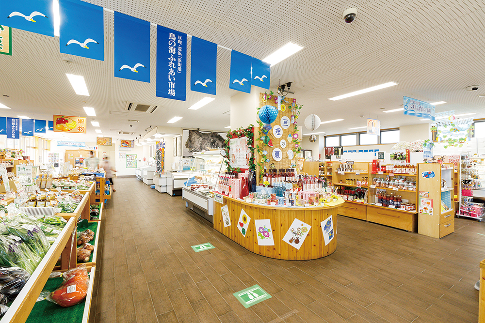 亘理町の海の玄関口・荒浜漁港の向かいに建つ『鳥の海ふれあい市場』は、地域の美味がずらりと揃う町一番の直売所。新鮮な朝獲りの魚介をはじめ、野菜や果物、加工品が並び、亘理の土産品のほとんどが購入できますよ。
