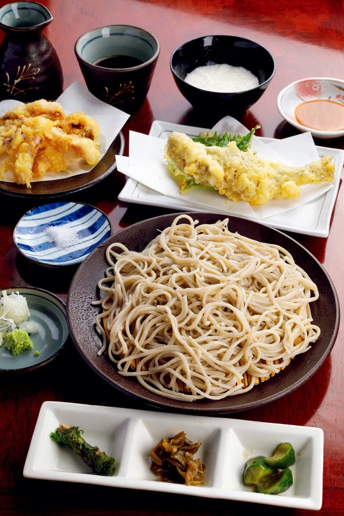 豊かな自然に囲まれた『川音亭』のそばは、すするたび鼻に抜ける豊かな香りと、舌に残る甘みが特長です。長い経験で培った職人技と敷地内に湧く天然水、そして厳選した玄そばが味の要。冬の数日間、店裏の川に玄そばを浸し寒風で乾燥させた「寒ざらしそば」を一年中楽しめるほか、10月からは新そばも登場します。