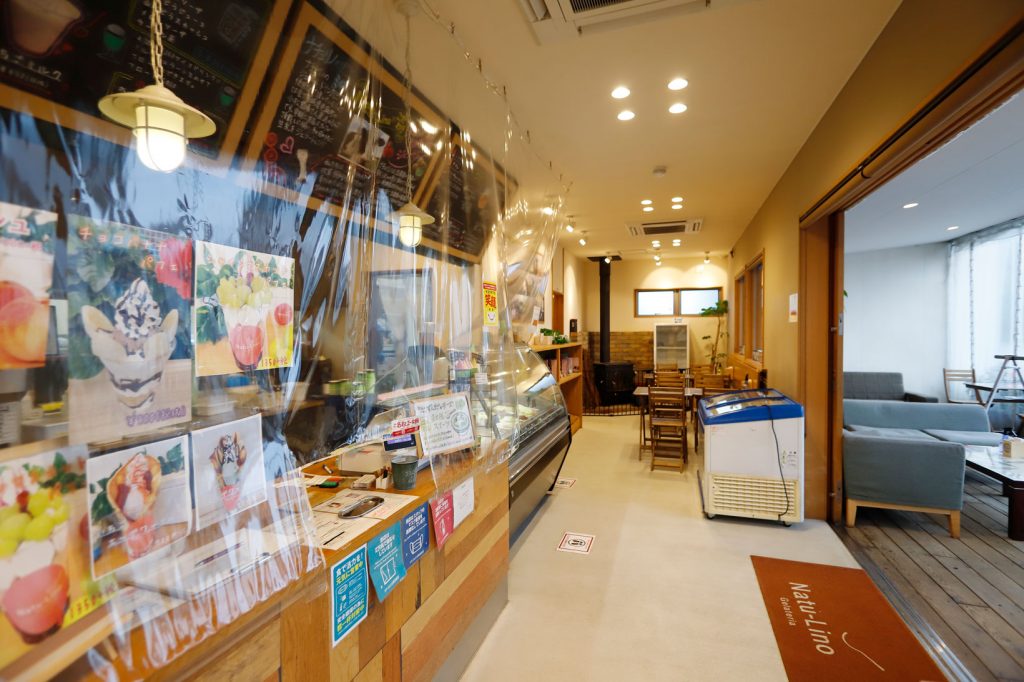 テイクアウトはもちろん、イートインもOK。ジェラートのほか、旬のフルーツたっぷりのパフェも人気