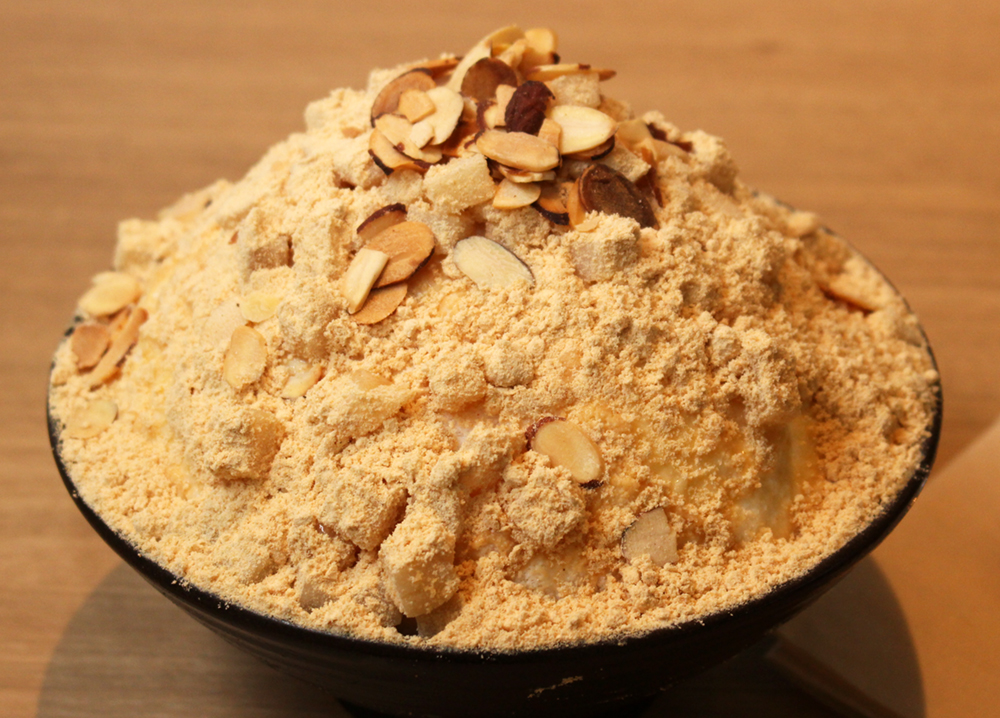 究極まで薄く削った氷の中には丁寧に炊いたあんこや練乳がたっぷり。別添えの黒蜜と“追いきなこ”をかけてどうぞ