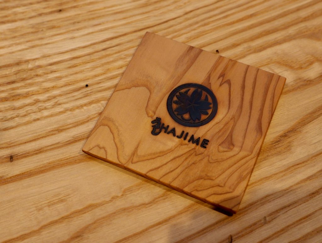 職人さん手作りのコースターにもこだわりが。こちらは秋田県産、樹齢300年のご神木クラス(!)のヴィンテージの木で作られているんだとか