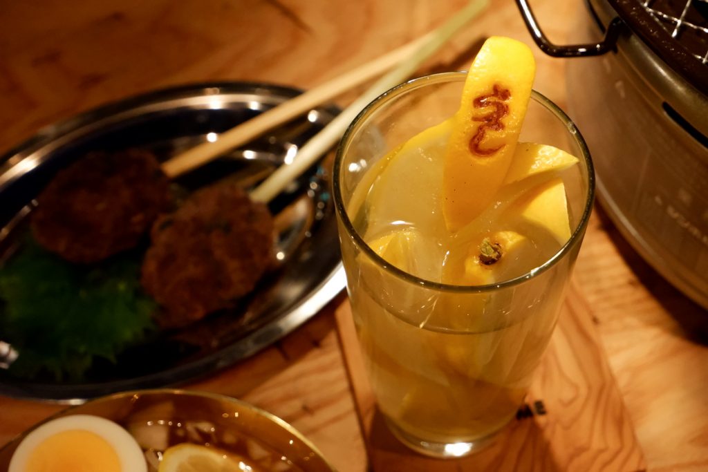 レモンがたっぷり入ったグラスのてっぺんには、「うし」の焼き印が!思わず写真に撮りたくなるニクい演出!