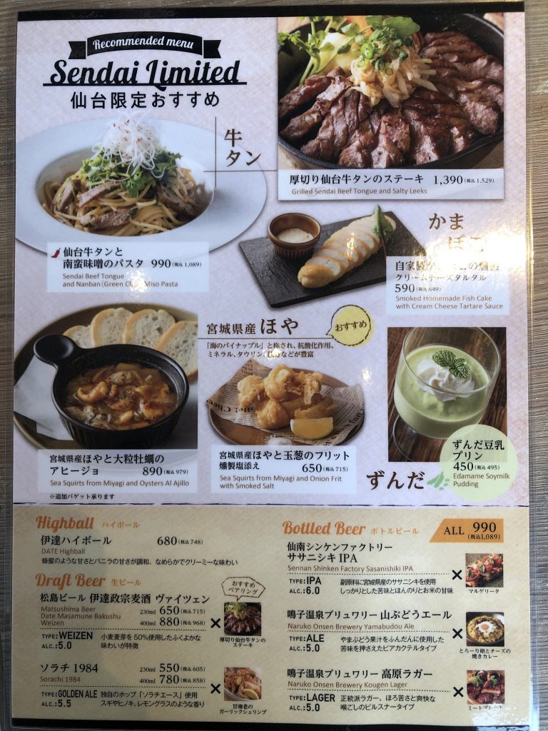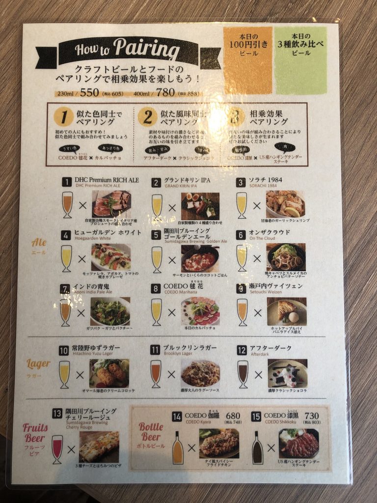 クラフトビールのメニュー。相性の良いフードメニューも紹介してくれているので、クラフトビール初心者でも安心して楽しめます