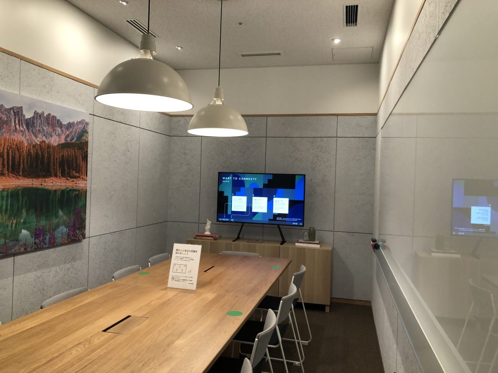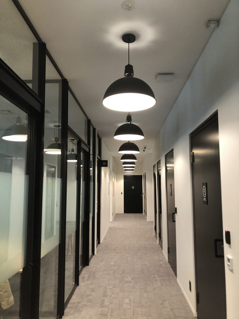 こちらが会議室へ続く廊下です。『WeWork』で使用している家具や照明はデザインチームが考えたオリジナルのものを使用。こだわり満載です!
