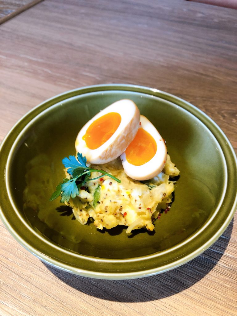 自家製燻製半熟煮玉子とベーコンのポテトサラダ(649円)