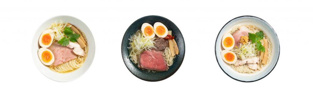4号店の「本枯節の王道中華そば」、「真鯛とマグロ節天然塩そば」、「4種の混合節味噌ヌードル」