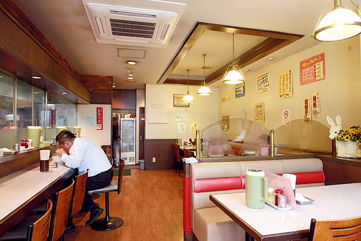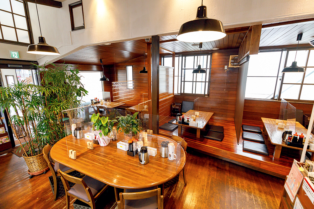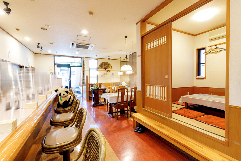 「仙台マーボー焼きそば」(800円)を求めて、足繁く通う常連客も。店内はゆったりと席の間がとられ、家族連れにも利用しやすい雰囲気