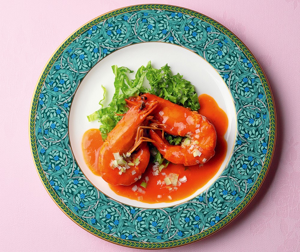 「頭・殻付 大海老のチリソース」(1尾1,012円)※注文は2尾から。平日は13:00以降注文可