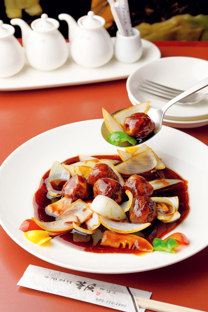 横浜や仙台の主要ホテルで、長年料理長を務めたシェフが腕を振るう中華料理店。こちらの酢豚は、サンザシの実から作った甘味である山査餅や梅肉を甘酢に加えることで、風味にふくよかな奥行きを持たせています。さらにゴマとケチャップを加え、親しみやすさもプラス。この特製甘酢がカラリと揚がった豚肩ロースに絡み、ついクセになる味わいです。