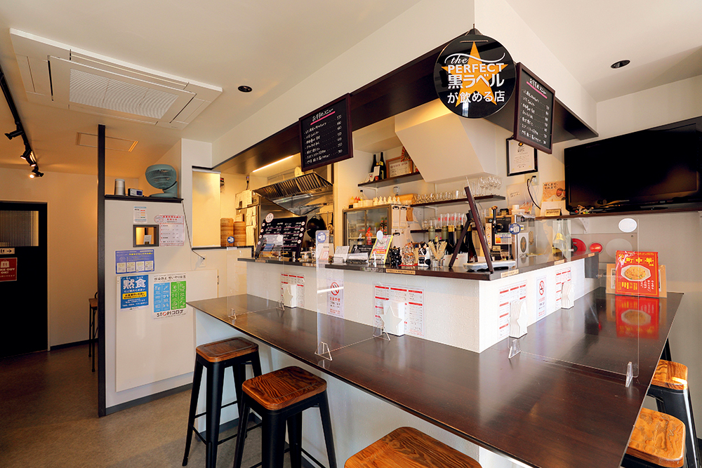 テーブル席のほか、壁に向いたカウンター席もあります。ひとりでも気軽に入れる気安さのある店構えも魅力