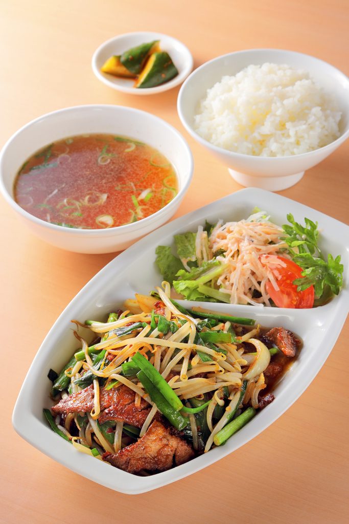 健康を気遣ってほしいという店主の思いやりが詰まった「ニラレバ定食」(900円)※ご飯、スープ、サラダ、漬物付