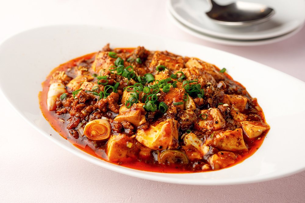 「麻婆豆腐」(935円)。大きめにカットされたネギの食感がアクセントに
