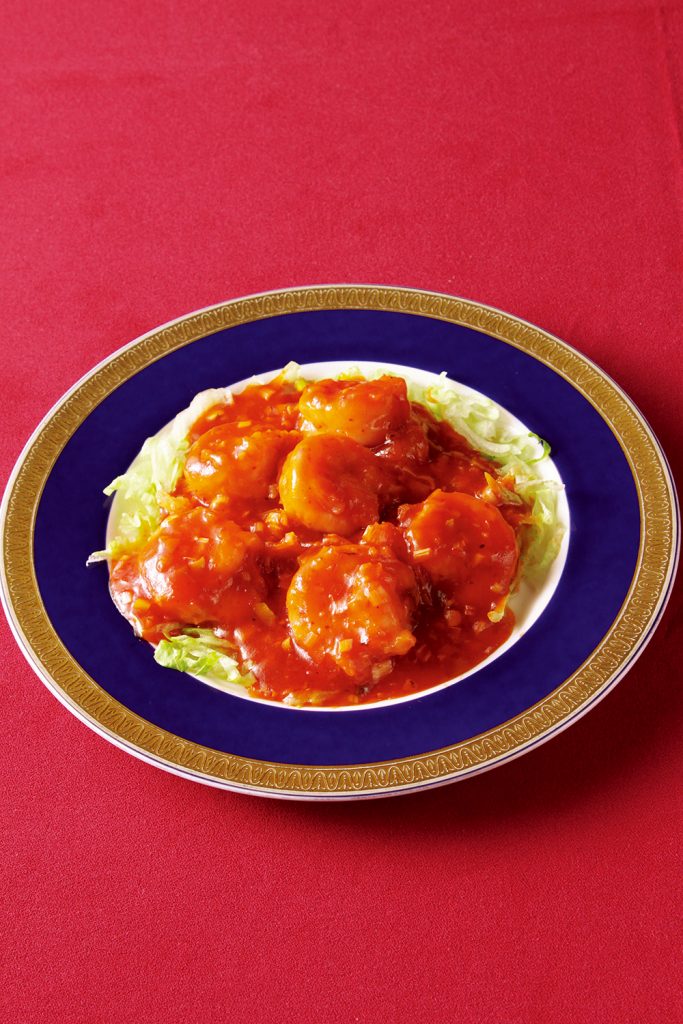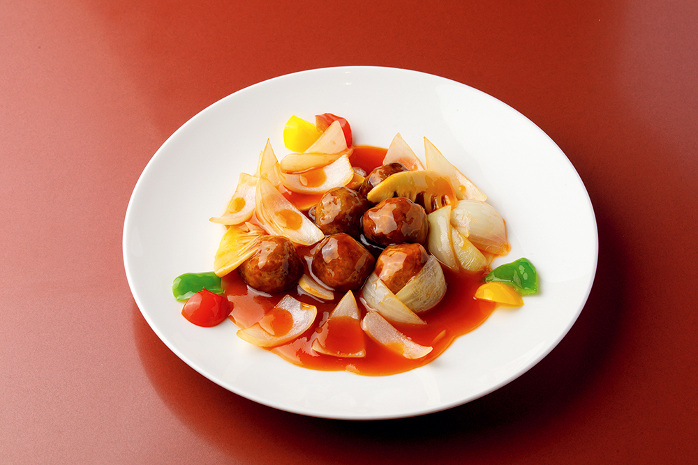 こちらの酢豚には、4時間半じっくりと煮込んだ豚肩ロースを使用しています。柔らかいため、崩れないように丸く形どっているのが特徴です。香ばしく揚げれば、外はカリッと中はしっとり。深いコクを醸す「鎮江香醋」を使った黒酢餡をたっぷりと絡めて頬張れば、口いっぱいに肉の旨みと心地よい甘酸っぱさが広がりますよ。