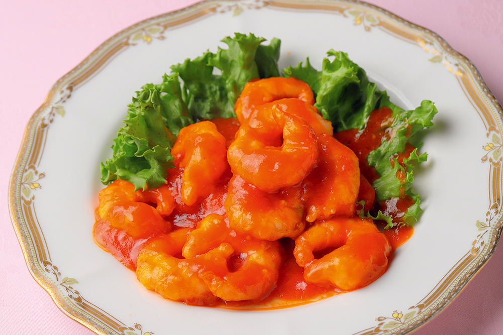 丁寧な仕事ぶりが光る「エビチリ」(980円)。女性の志向も配慮しつつ、さっぱりとした後味に仕立てています