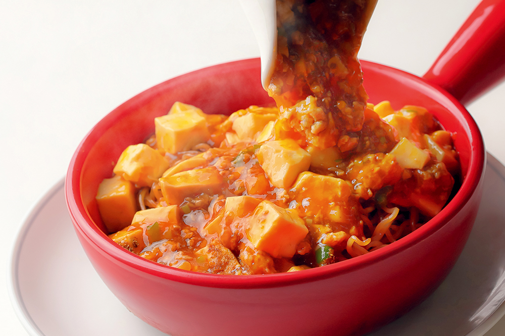卓上で餡をかけて仕上げる「マーボー焼きそば」(970円)も人気。弾力ある麺とピリ辛餡が好相性