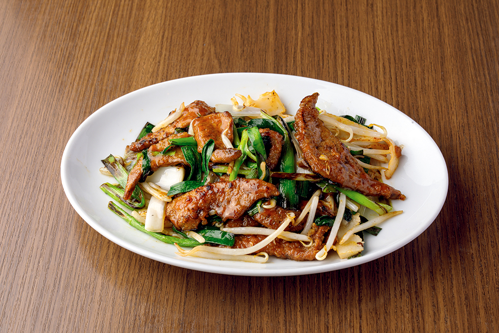 「ニラレバ―炒め」(935円)。レバーのおいしさもさることながら、ニラのシャキシャキ感やネギの甘みもご馳走!