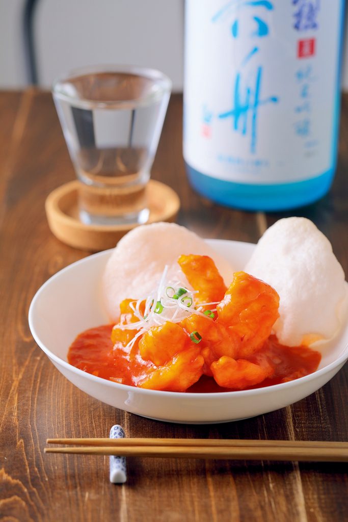 ホテルレストランから町中華まで、さまざまなスタイルの中華料理店で修業を積んだ店主が提案するのは、「食感」を主役にしたエビチリです。口の中で弾けるような大エビの歯ごたえを引き出すべく、下ごしらえの切り方にひと工夫。少なめの油でカラリと仕上げ、白髪ネギとエビせんべいで軽やかなアクセントを添えています。