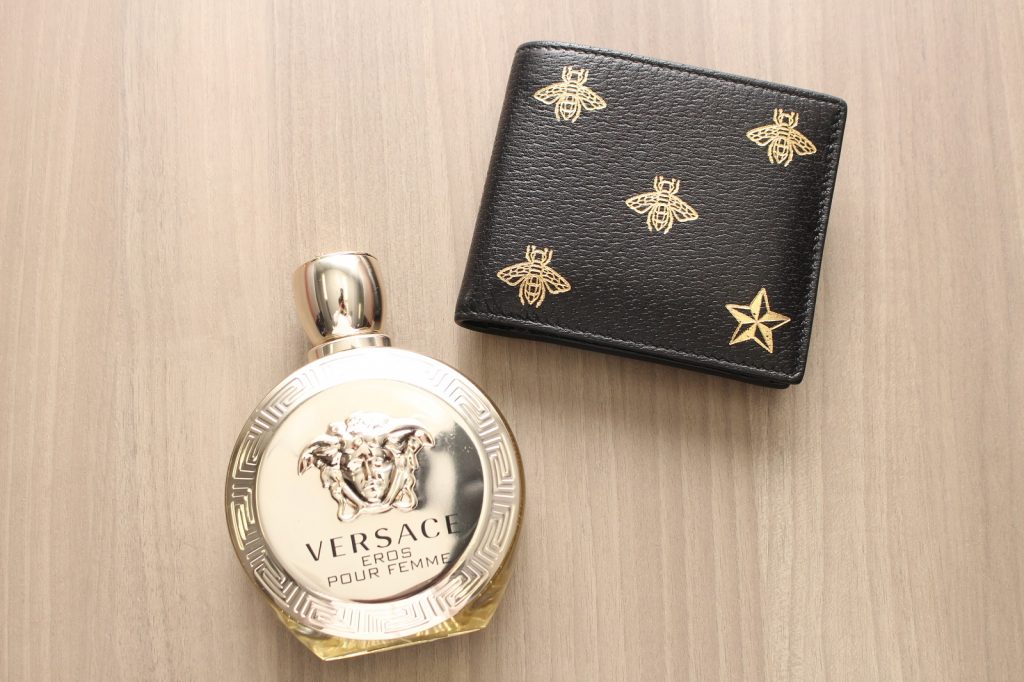 GUCCIの香水とVERSACEの財布。個性的なデザインがすてきです!