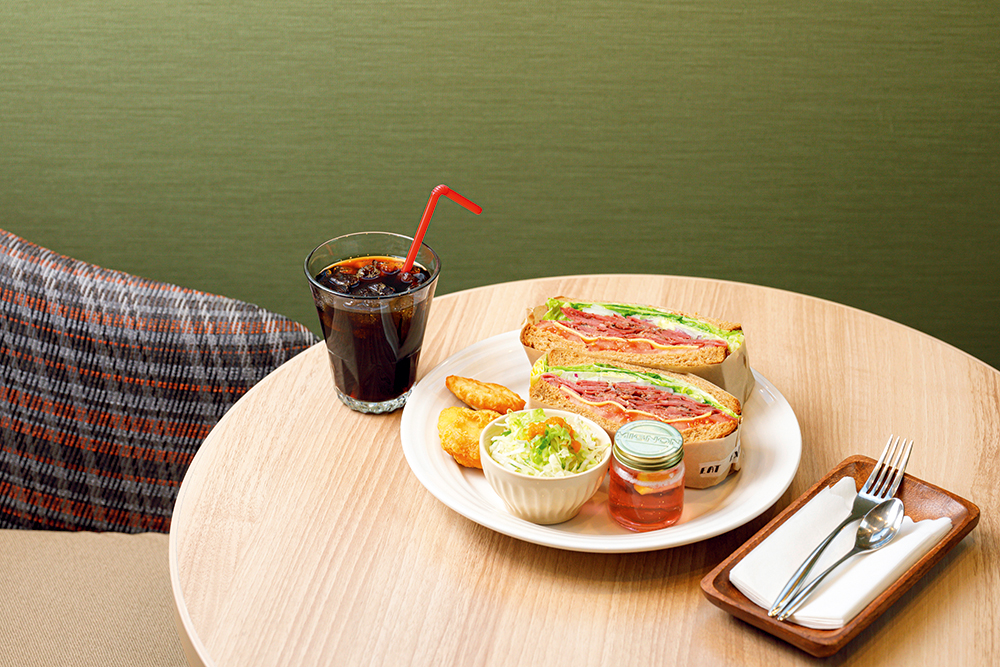 30~40年代のアメリカンダイナーをイメージした店内で味わえるのは、店主がアメリカ・セントルイスで食べた味を再現した「パストラミサンド」。コショウが効いたパストラミなどの具材を、ほんのり甘い黒糖ライ麦パンでサンドしたボリューム満点のひと品です。食べるときはアメリカンスタイルで、贅沢にガブリとどうぞ!