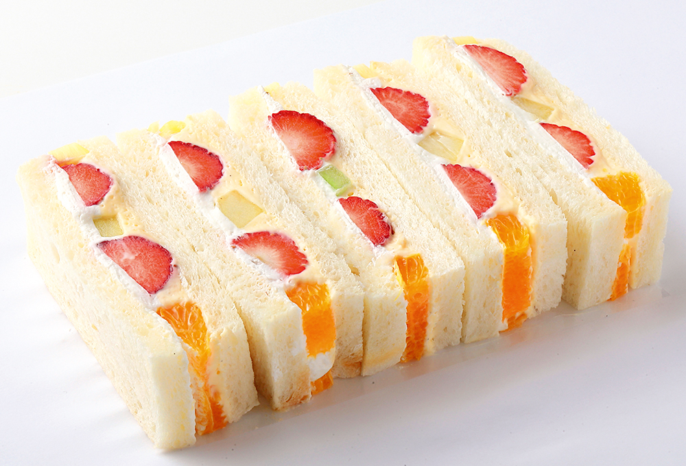 「フルーツサンド」(一種302円~、イートインの場合308円~)。イチゴやミカン、キウイ、パイナップルなど季節の果物が登場