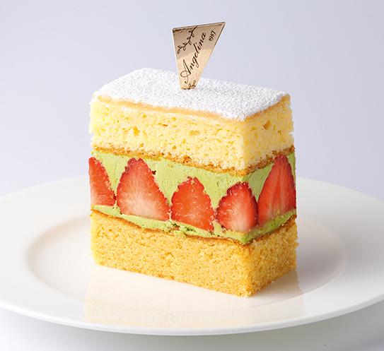 アンジェリーナでは、抹茶バタークリームを使用したフレジェが完成。生地に練り込んだアーモンド、そして果実酒・キルシュと一緒に広がるイチゴの香りを楽しんで。