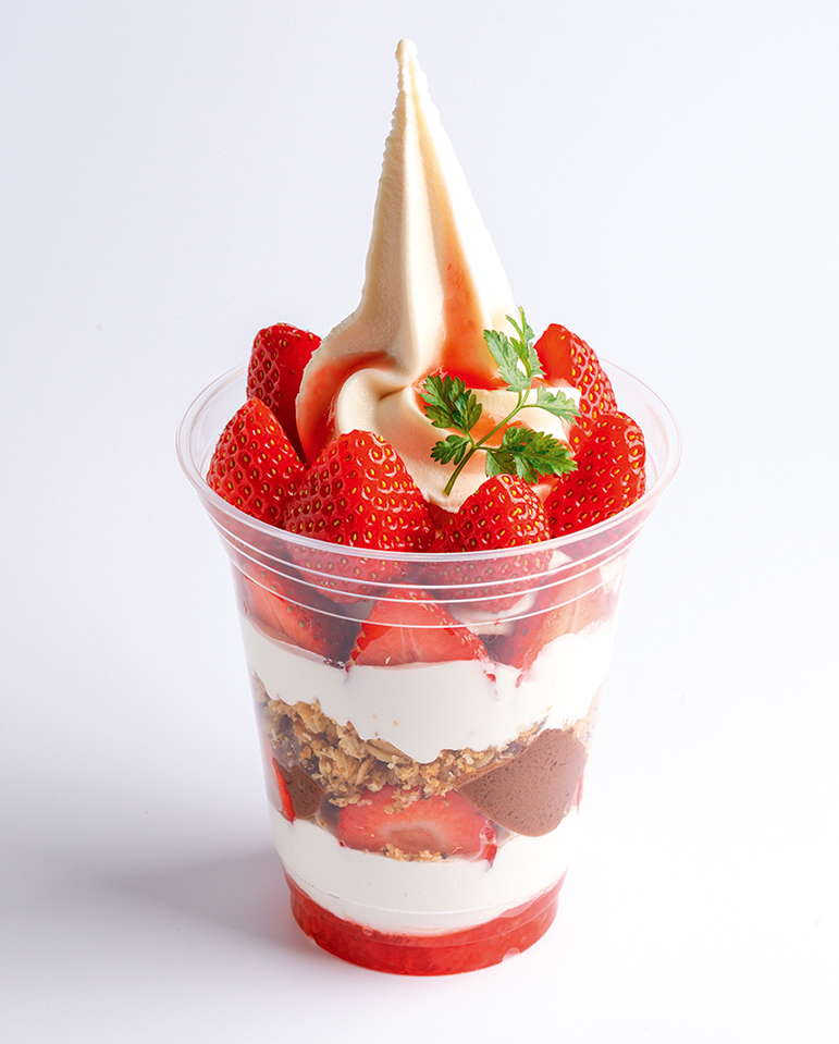 形や断面、一粒そのものが可愛いにこにこベリーの特徴が活きたメニュー。爽やかなイチゴに合わせた、甘い練乳とホワイトチョコの隠し味がポイント。