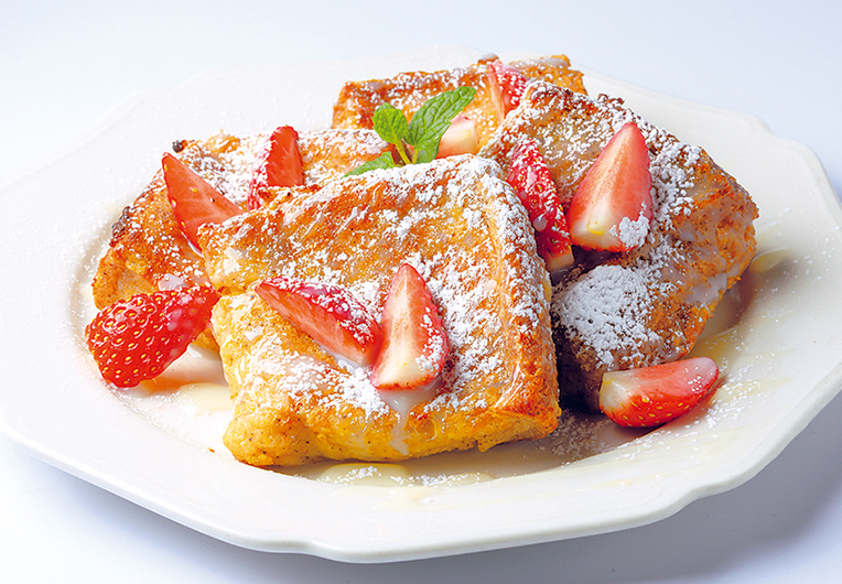 東北産小麦に黒米をブレンドしたオリジナルパンで作ったフレンチトースト。季節限定のにこにこベリーとの組み合わせを楽しんで。