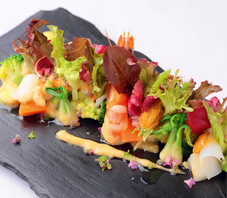 ファンの多いスペシャリテ「魚介のサラダ」。仕入れによって野菜や魚介の種類が変わるのがお楽しみ