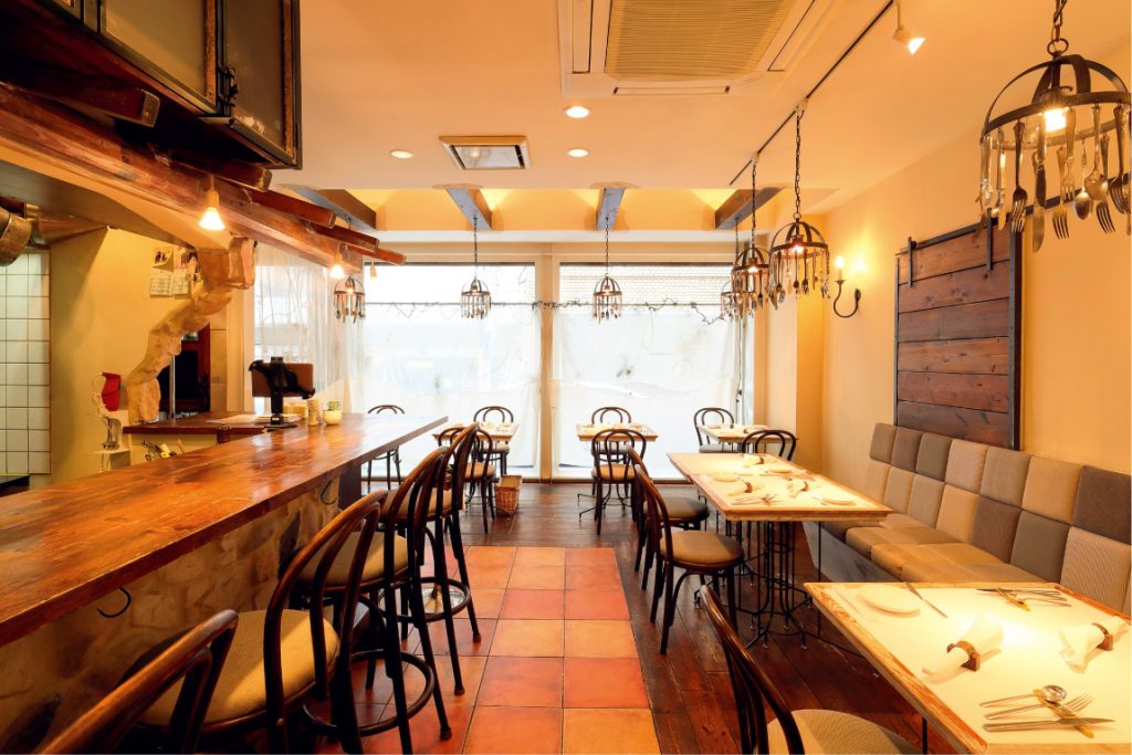 仙台在住のデザイナー・尾形欣一氏が手掛けた空間。多彩な表情の木々に包まれ、肩ひじを張らない雰囲気