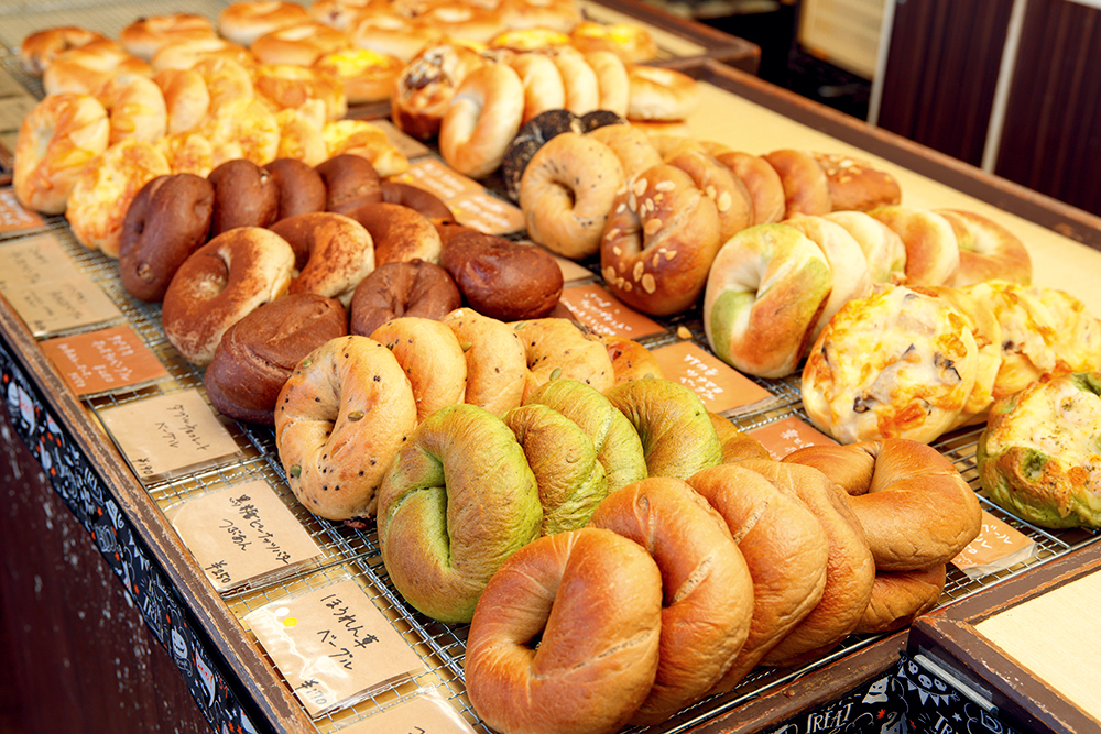 ベーグルの本場・ニューヨークで修業を積んだスタッフが手がける一軒。店内には、味はもちろん、ビジュアルにも力を入れた自慢のベーグルがずらり。ラインナップは常時約25種類と、バラエティ豊かに取り揃えています。ベーグルは冷凍すれば1ヵ月程度は保存がきくので、自分好みのアレンジを見つけながらゆっくりと楽しめますよ。