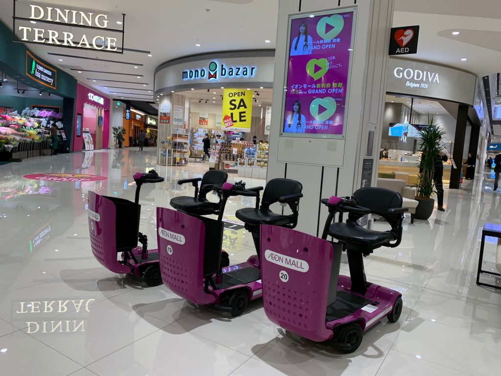 ショッピングしたアイテムと一緒に、乗って館内を移動できるショッピングモビリティ(4月より導入)