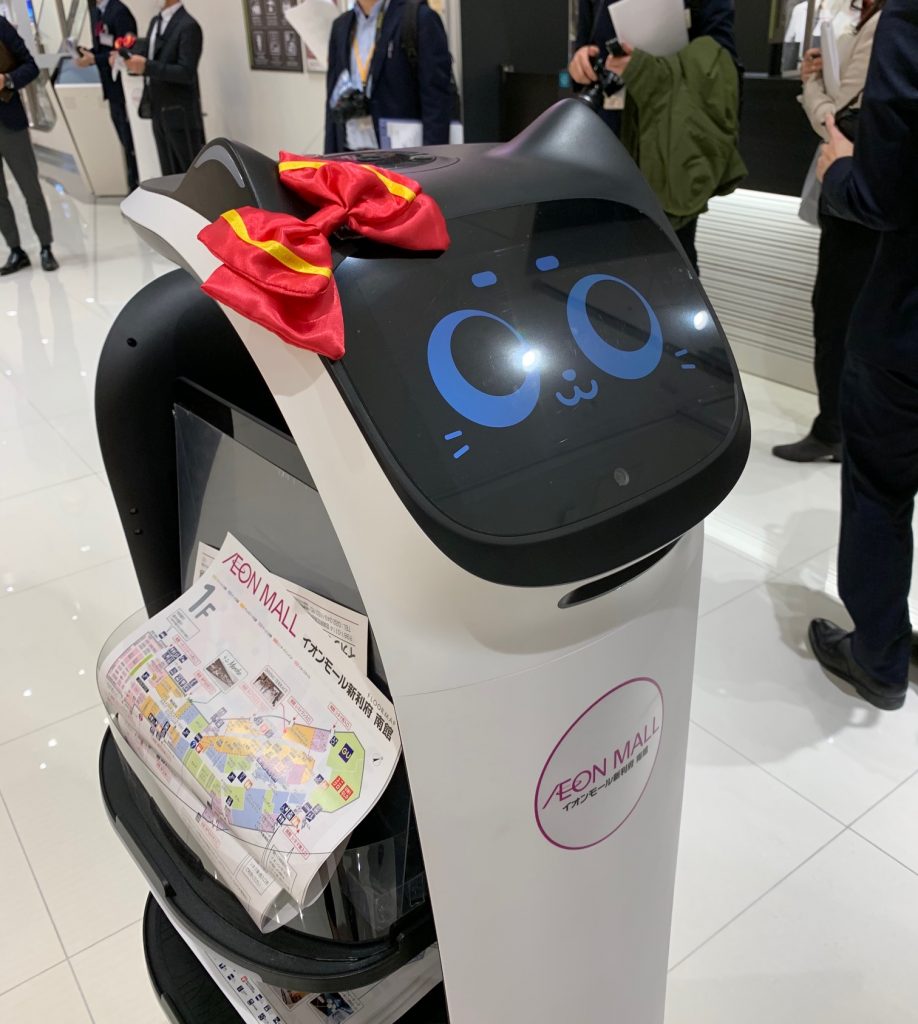 館内を自動で走行しているネコ型ロボット。愛嬌たっぷりにお出迎え!