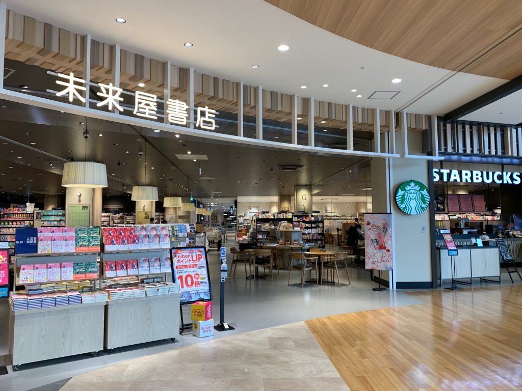 2Fには、児童書から専門書、ステーショナリーまで幅広く揃う『未来屋書店』が出店。併設の『スターバックスコーヒー』と併せたブックカフェスタイルの一軒になります