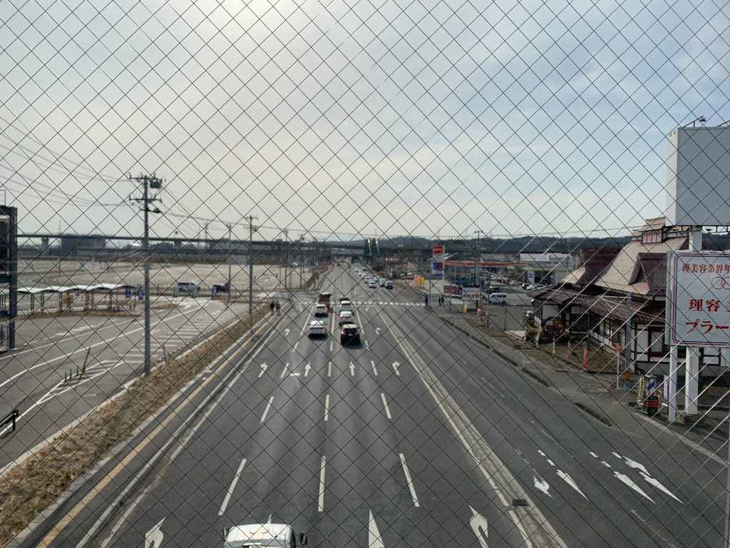 ちなみに、利府街道の上にまたがっている連絡通路の上からの風景がこちら。