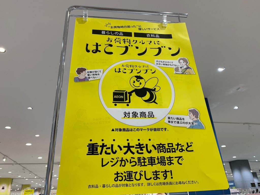 さらに館内のお買い物では、重たい大きな商品をレジから駐車場まで運んでくれる「はこブンブン」システムも便利!