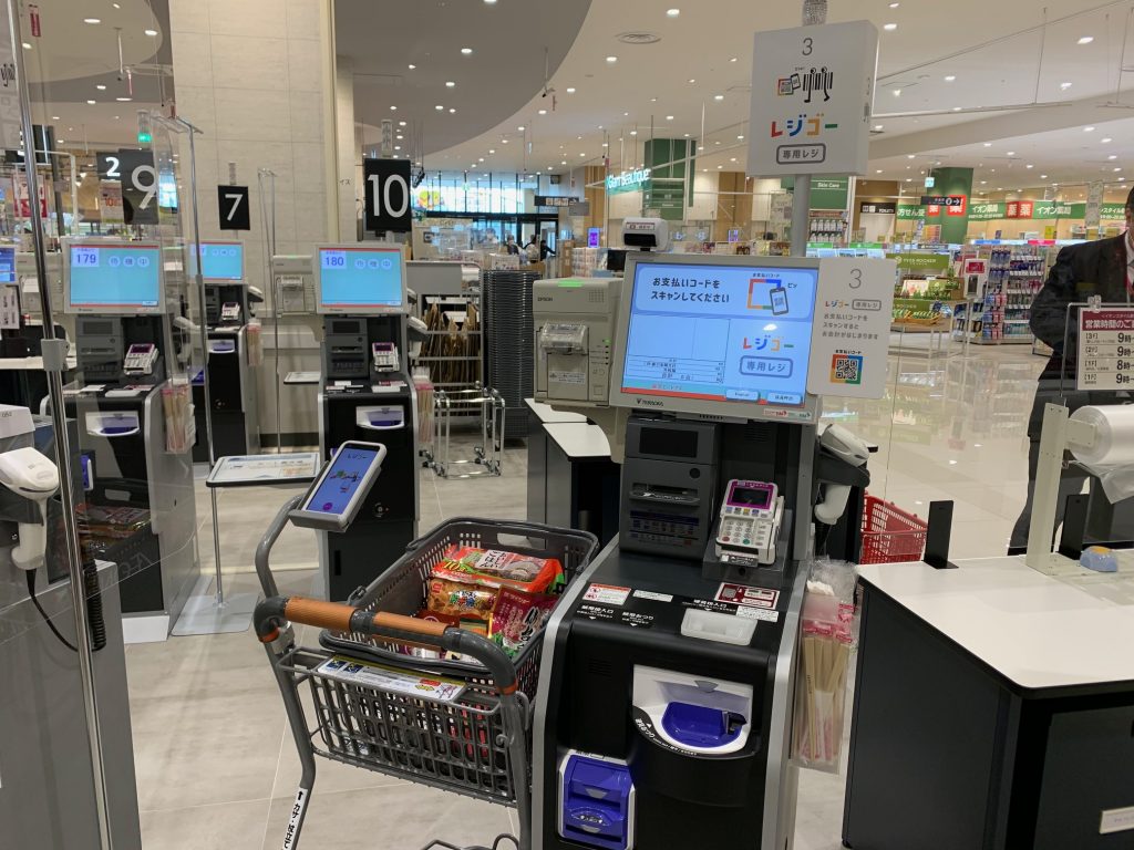 最後に専用レジで会計!非対面での支払いができるため、感染症防止対策としても期待できますね