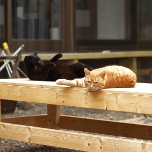 境内には、7~8匹の猫が暮らしています。ネコ好きのbonさんponさんもニッコリ