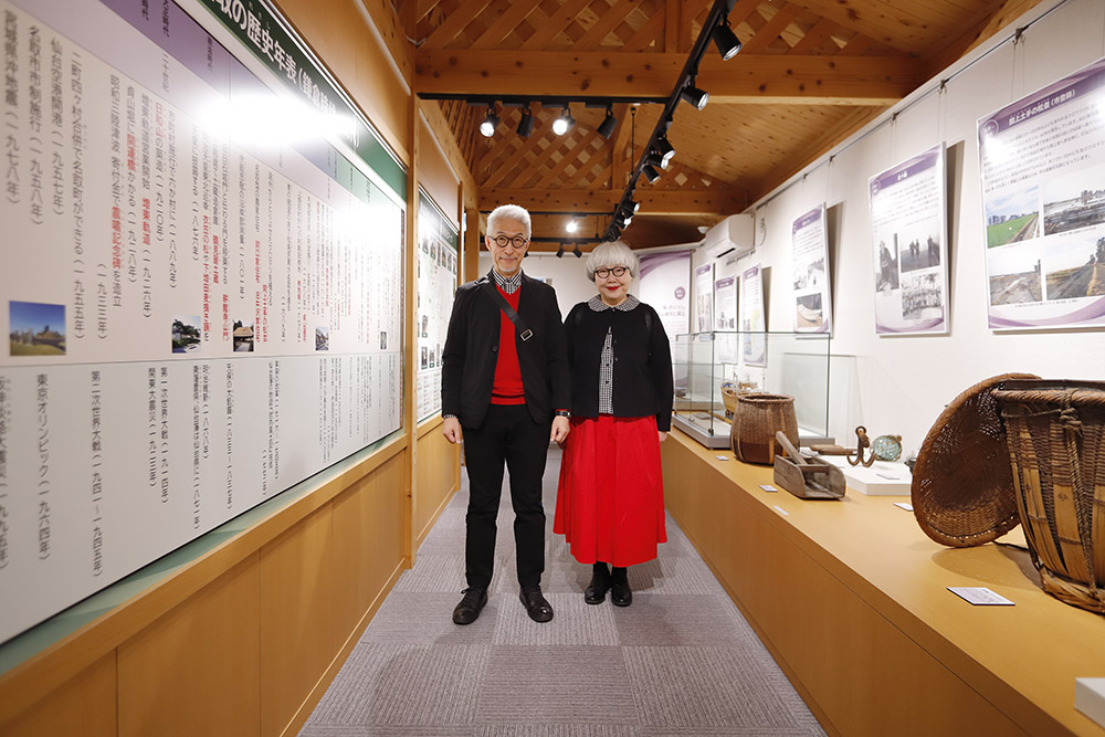 プロジェクションマッピングを使って、時代によって移り変わる海岸線と名取の町並みを見ることができるコーナーがあったりと、模型や映像を用いた「視覚的」な演出が施されています。「古墳時代には名取が東北の中心だったんですよ」と話す鴇崎館長。「知っているようで知らない名取市の「今と昔」を知ることができました」とponさんも笑顔に。