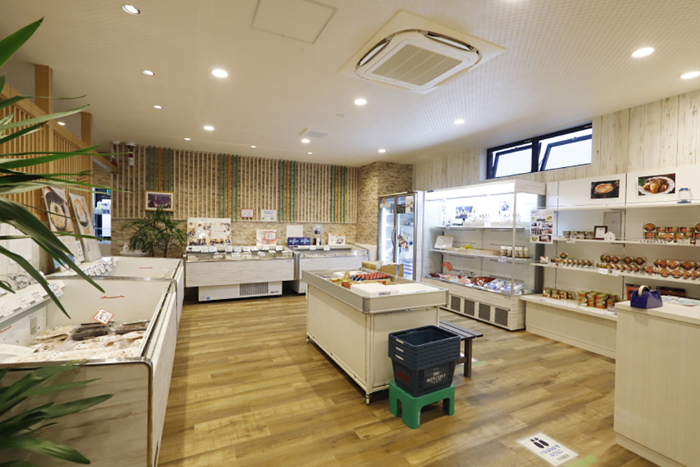 閖上の物産を扱うショップ内には、店を運営するマルタ水産のしらす加工品のほか、閖上水産加工組合の各社が手掛ける生しらすや蒲鉾、干物、缶詰など、閖上にストーリーのある商品が数多く並んでいます。丼や炊き込みご飯はもちろん、ピザやパスタなど、様々な料理に合うしらすはお土産にもぴったりです。