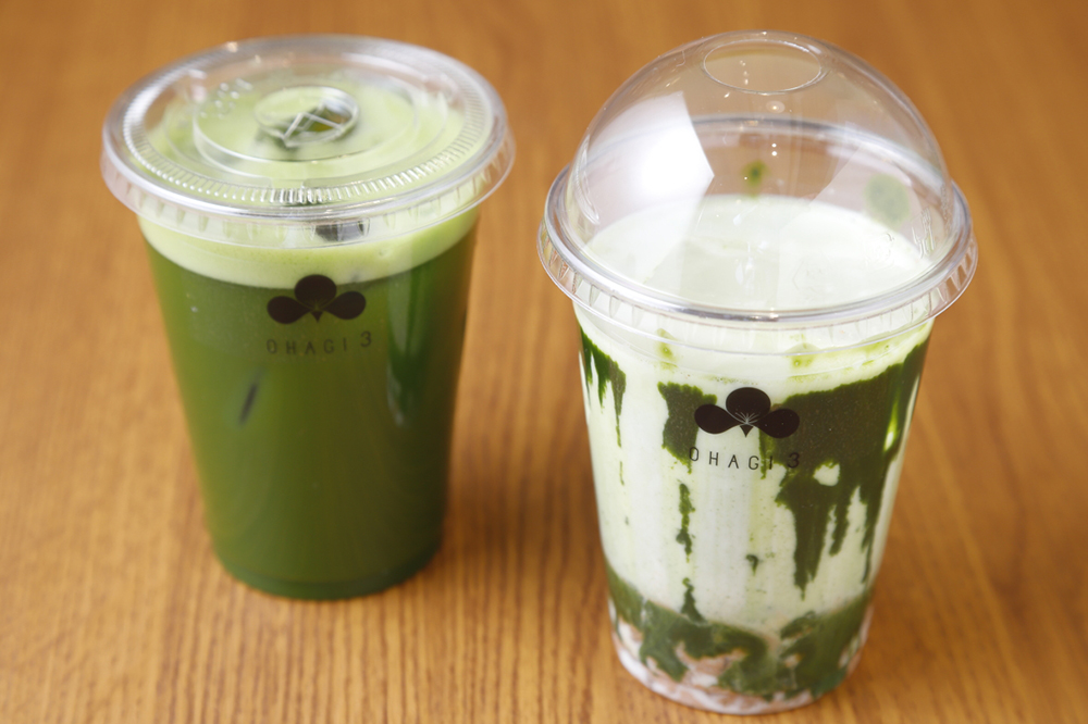 おはぎやドリンクにも使用している「天空抹茶」は標高600m以上の高地で栽培された静岡県川根産有機栽培。ほうじ茶ベースのラテや店内で作っているわらび餅をカッティングした「わらび餅ドリンク」も好評です。